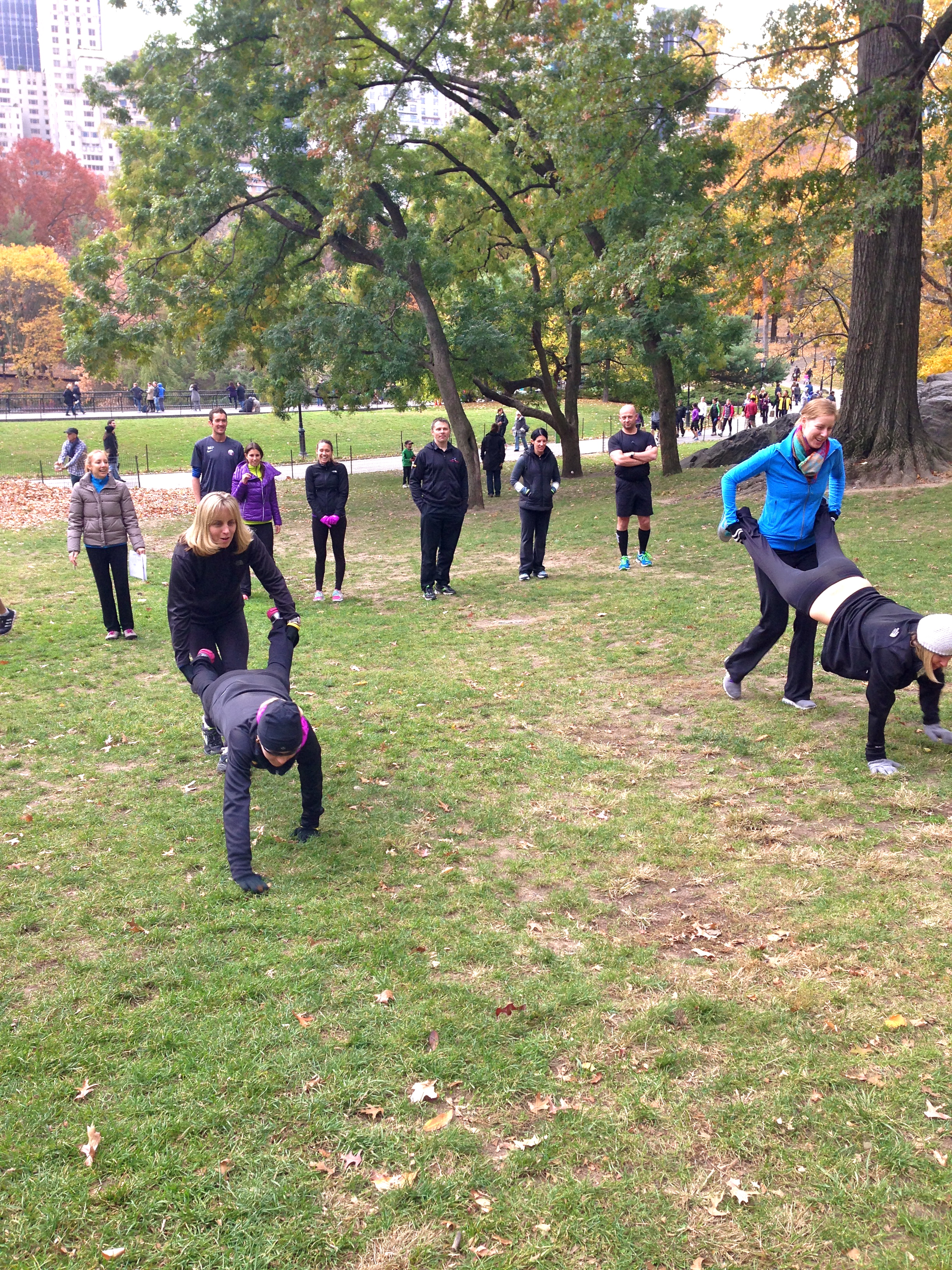 My graduate program volunteered to plan fun activities for everyone who wished to join in Central Park – many of whom had never been to New York City and were thrilled to be running around the grassy oasis. These men and women were dressed in workout clothes and ready to get down on their hands and knees – literally. Relay races consisting of wheelbarrow races, hula hooping, sprinting, push-ups and sit ups were just a few of the stations that we set up. Also, everyone resurrected their P.E. skills and got together for dodgeball. For a rest – and a healthy snack – different teams got to play NYC trivia and snack on apples (we called the activity “taking a bite out of the Big Apple”). Basically, everyone felt like a kid again, because working out became fun again. I think we can all take a cue from these amazing athletes and researchers and channel our inner child – the one who used to have to move around in order to stay sane.