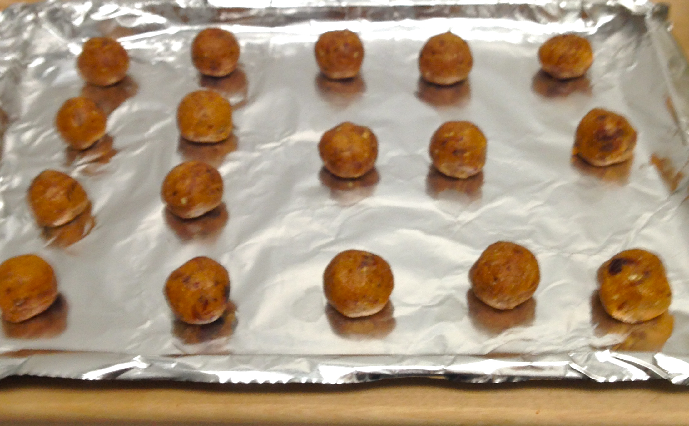Nutrient Breakdown for 1 ball (assuming recipe yields 16 servings): Calories 110 calories, Total Fat 7 g, Saturated Fat 2 g, Cholesterol 0 mg, Carbohydrates 11 g, Fiber 2 g, Protein 2 g, Sodium 26 mg, Calcium 3 mg